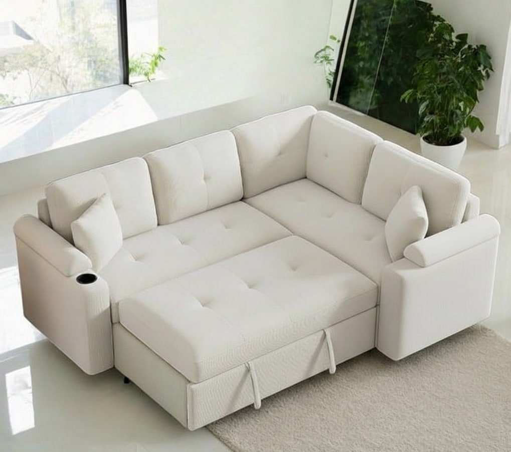 Lavish Ivory Luxe L-Shape Tufted Sofa Bed
