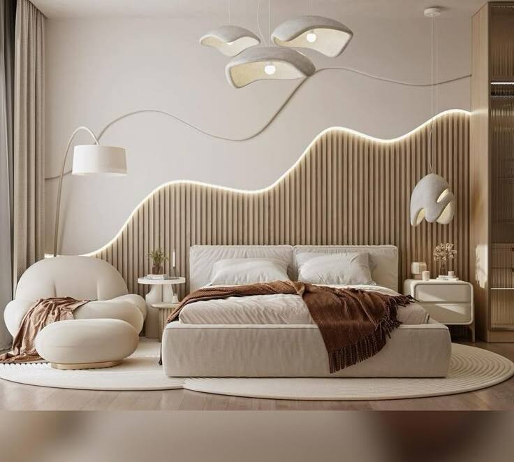 Transform your space with this LED Wall Panel & Full Luxury Bedroom Set, crafted to offer both comfort and contemporary elegance. Designed with soft curves and warm tones, this set is a perfect fit for modern interiors.